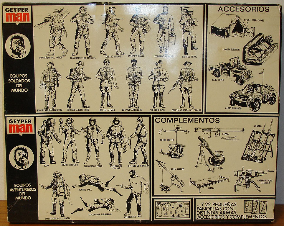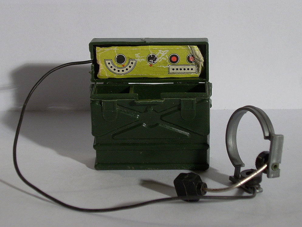 prismáticos, caja detonador, subfusil M3, foco señales y carrete