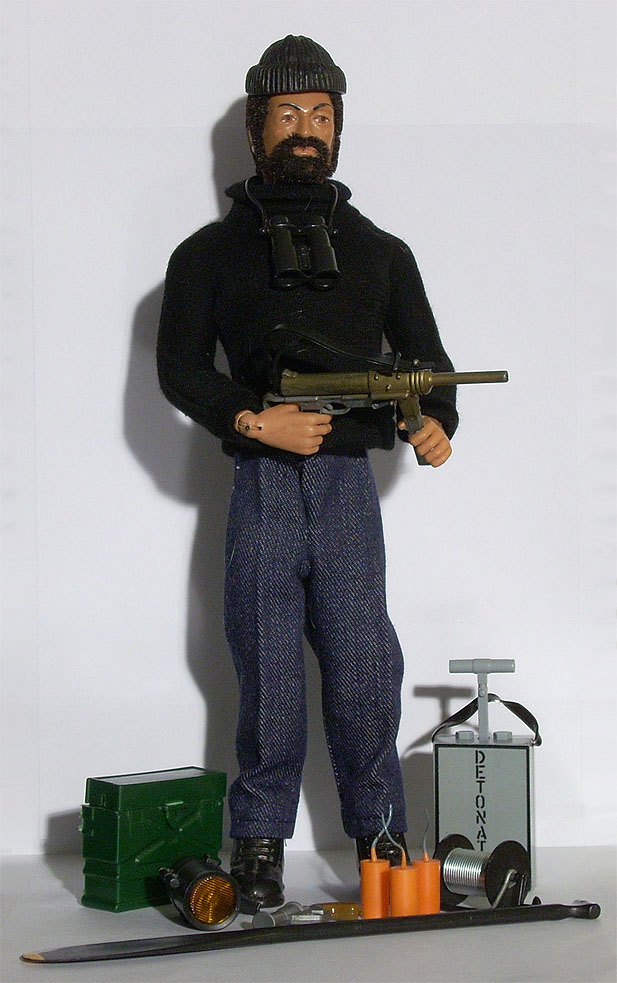 T.N.T., pistola señales, prismáticos, caja detonador, subfusil M3, foco señales y carrete