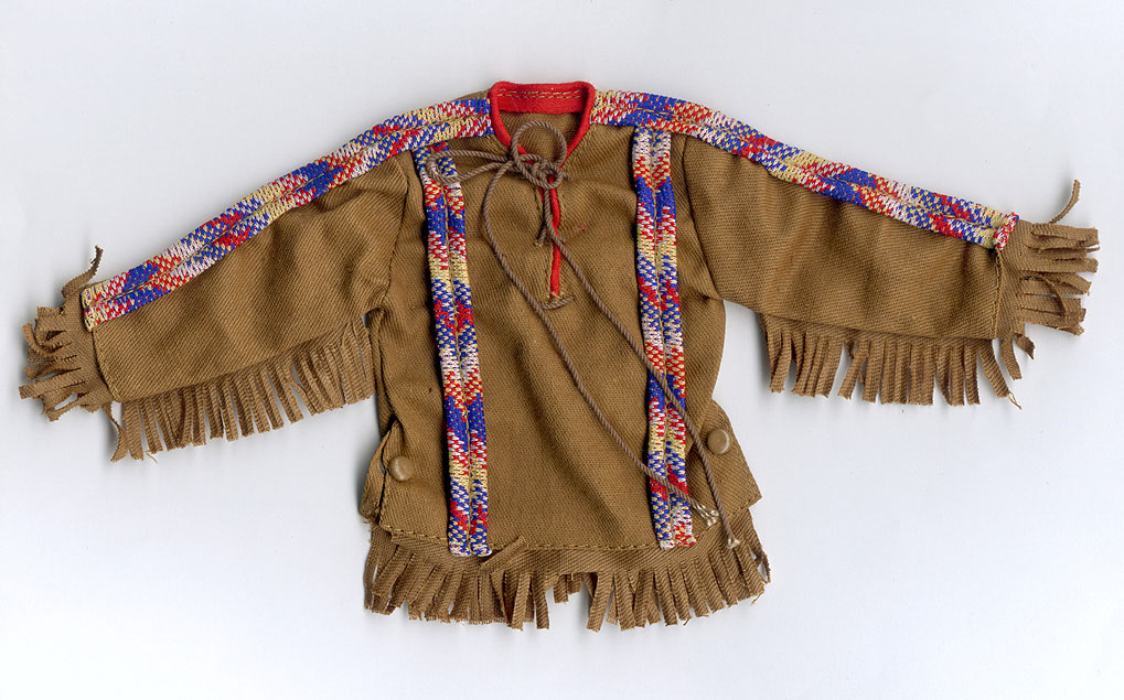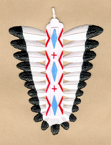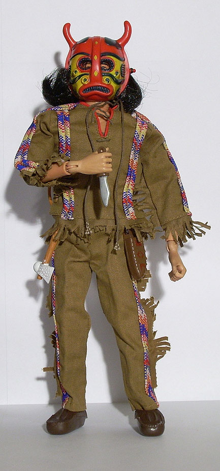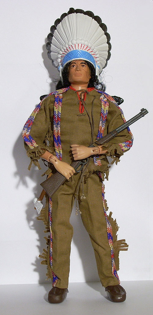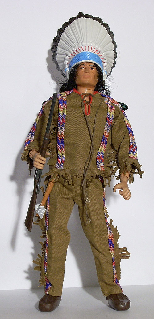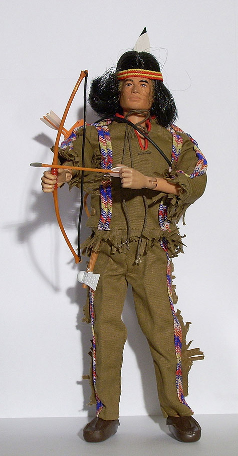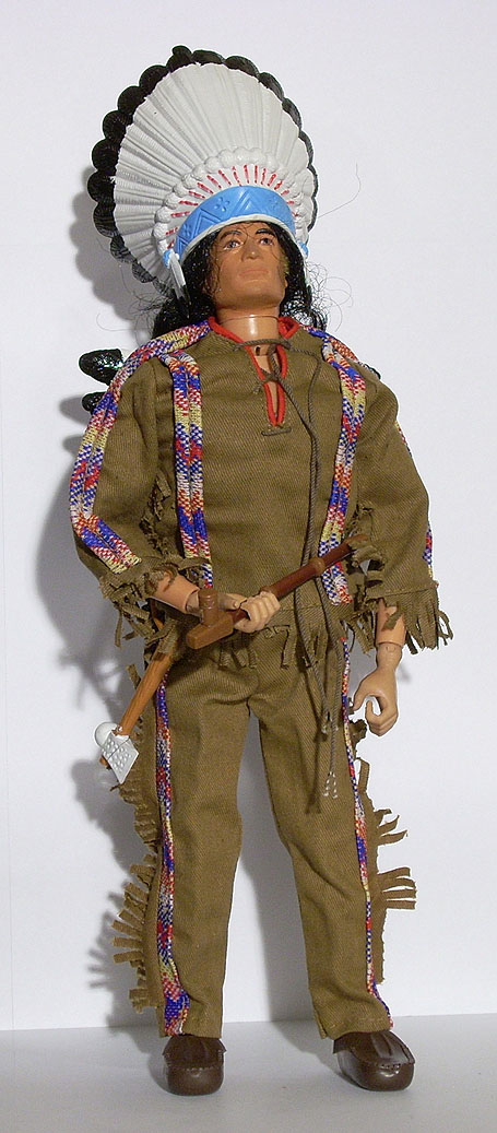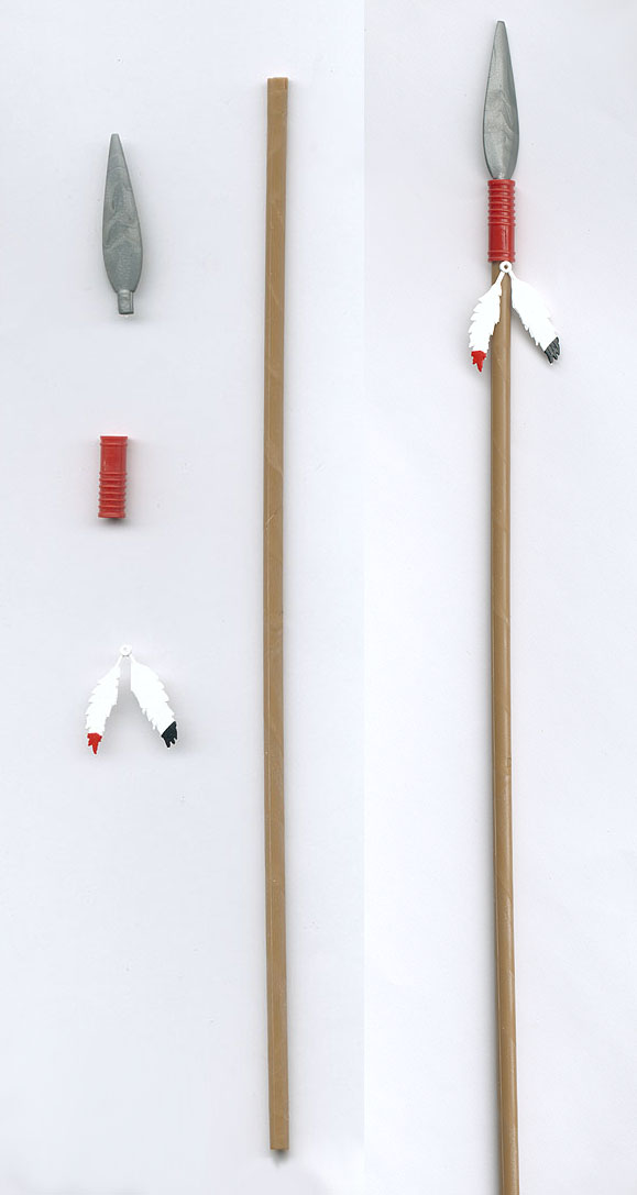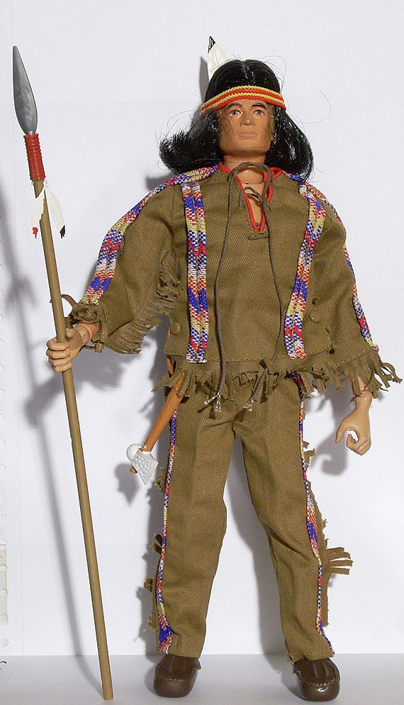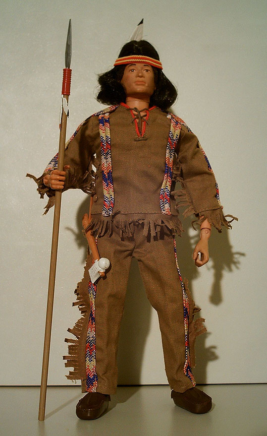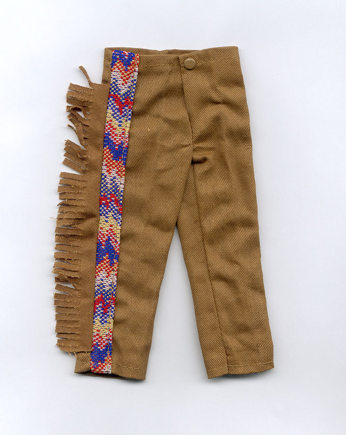 pantalones, mocasines, tomahawk, lanza con plumas y cinta de pelo con pluma. |