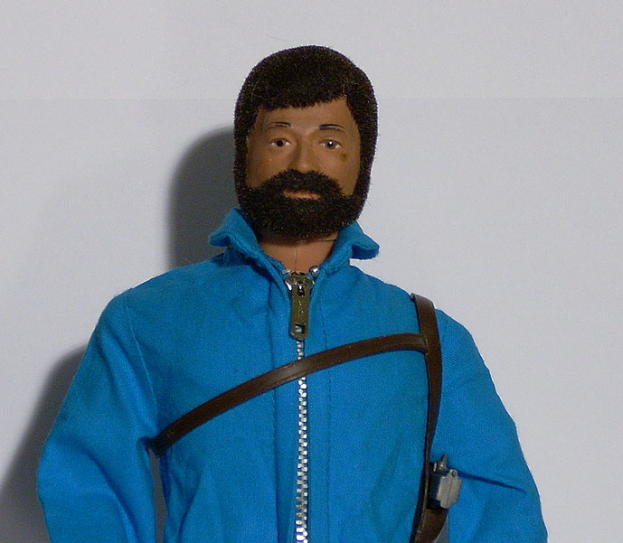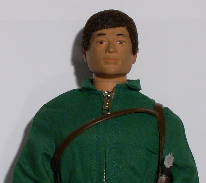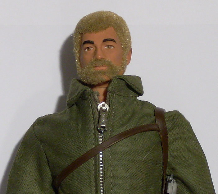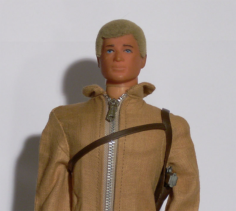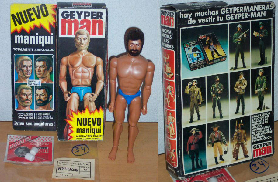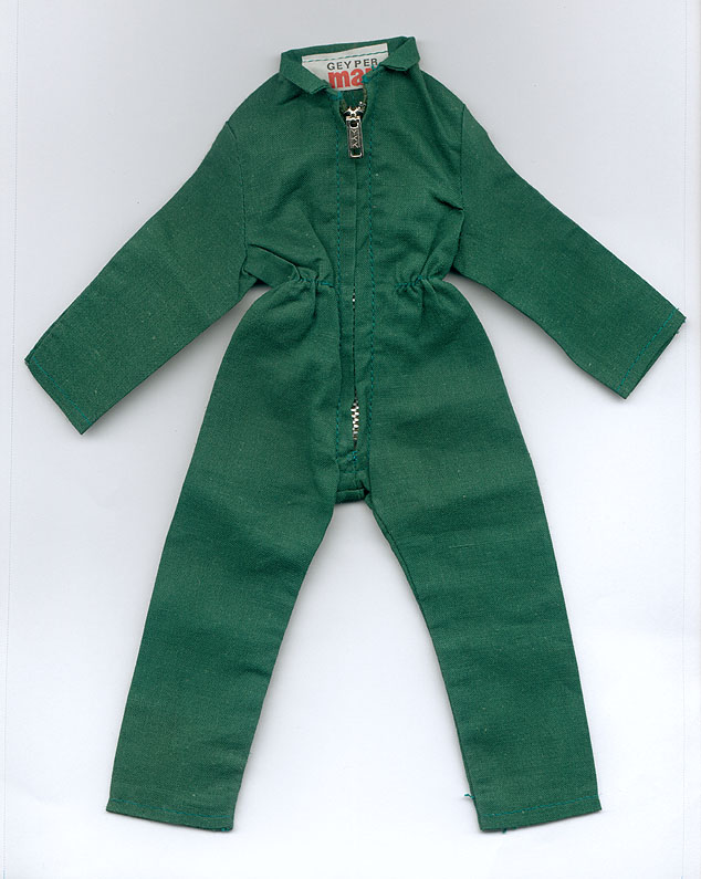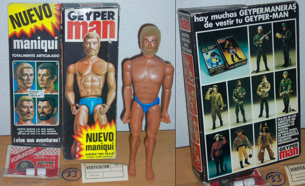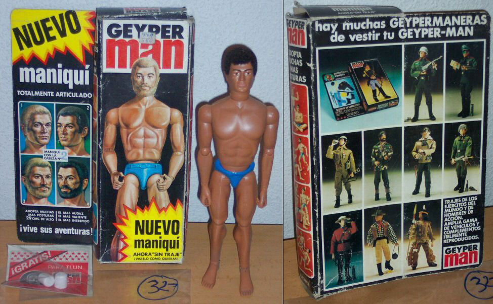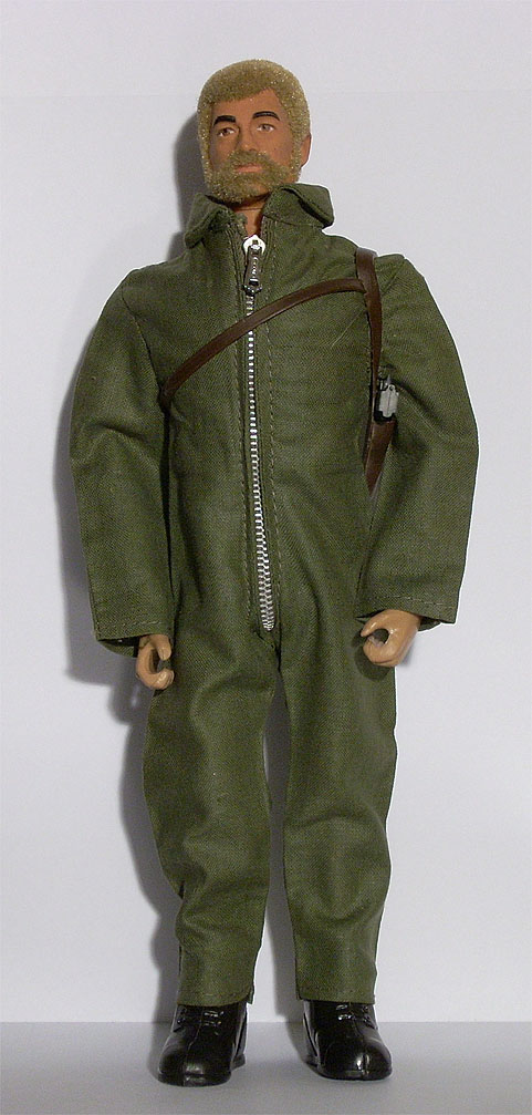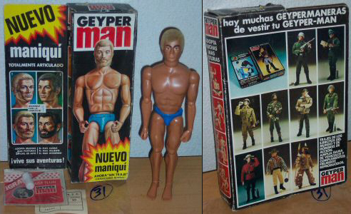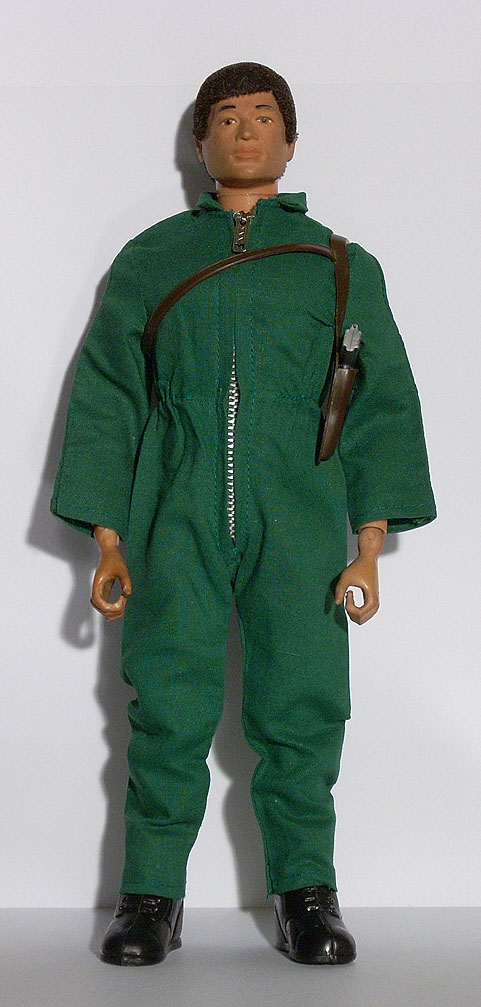 Muñeco Geyperman, mono (verde oliva, verde esmeralda, crema y azul), botas negras, funda sobaquera y pistola Colt 45.