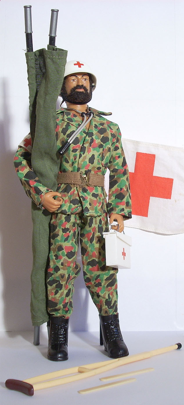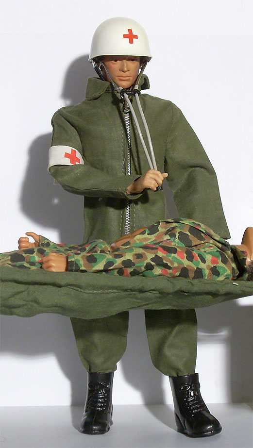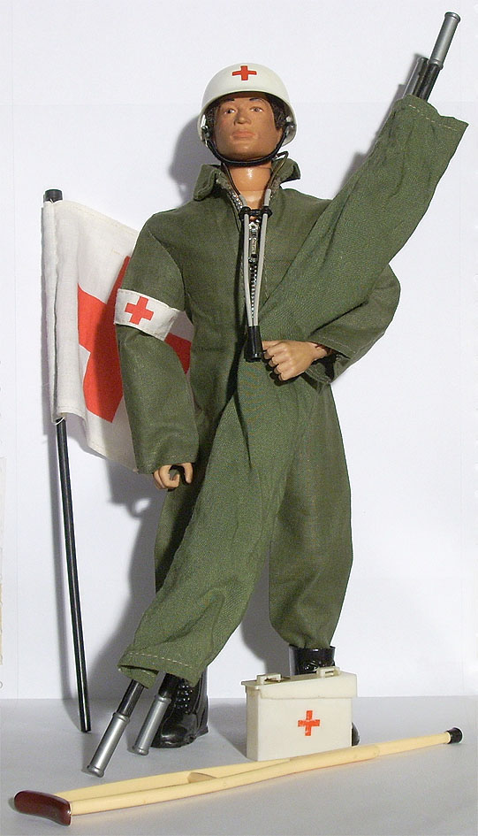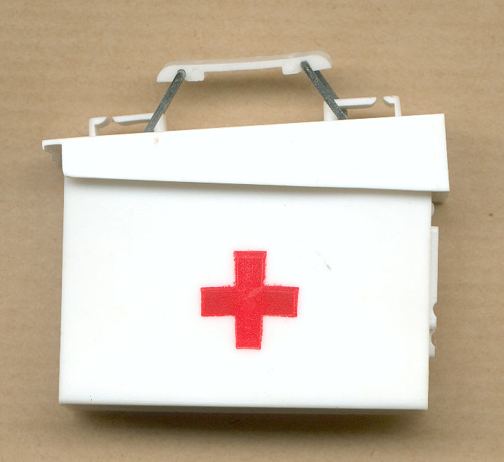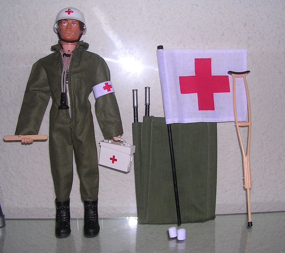 Casco, brazalete, estetoscopio, camilla, muleta, bandera, botiquín, vendas y tablilla.