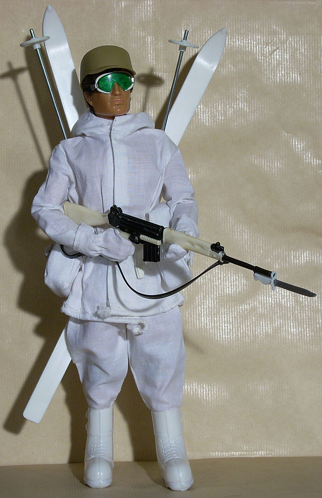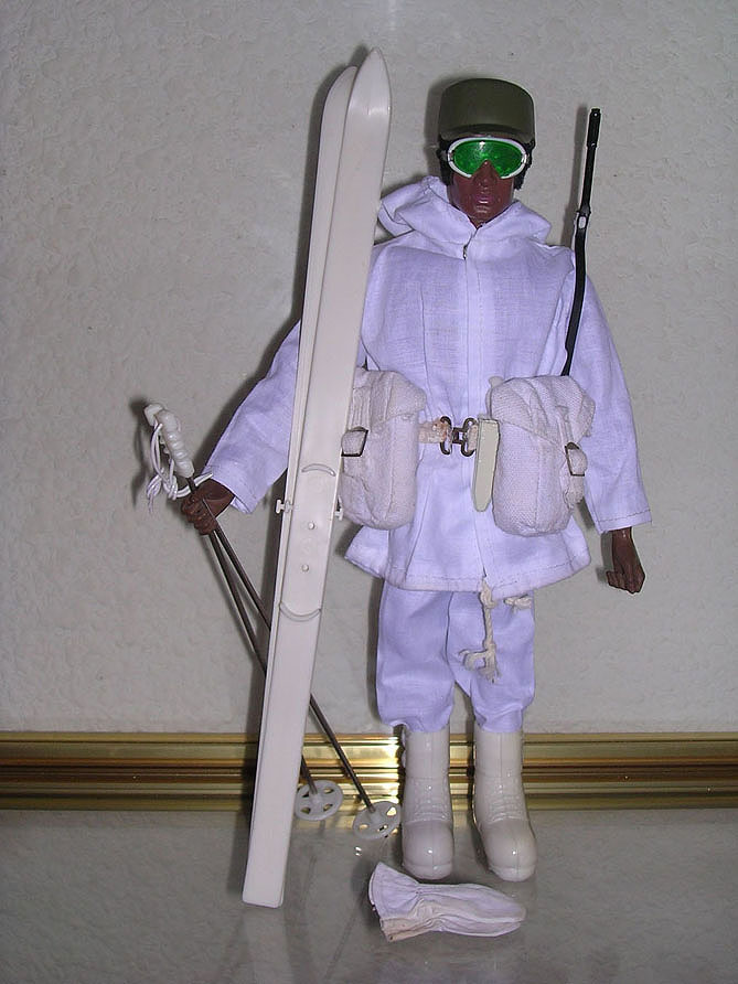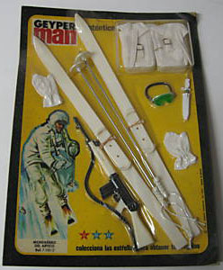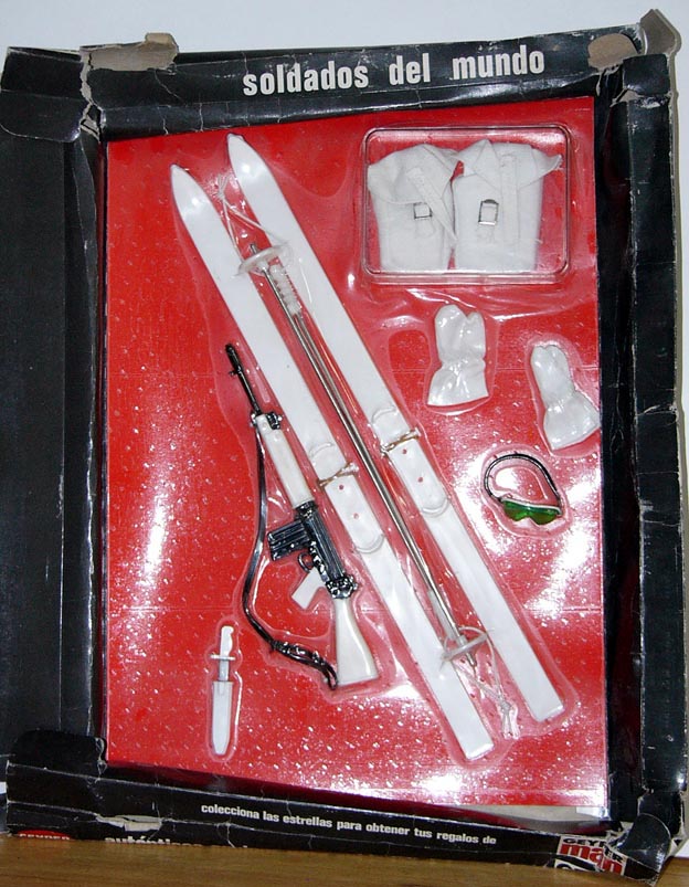 guantes, 2 macutos, esquíes, bastones esquíes, gafas, bayoneta, funda