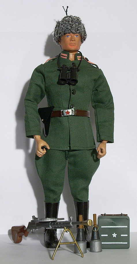 cinturón, 2 granadas antitanque, medalla Lenin, prismáticos, fusil