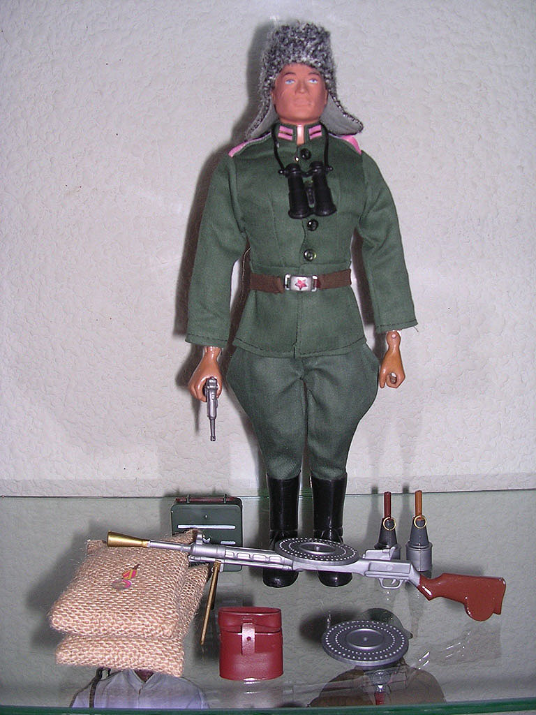 prismáticos, caja munición, fusil Degtyarev, soporte fusil, peine