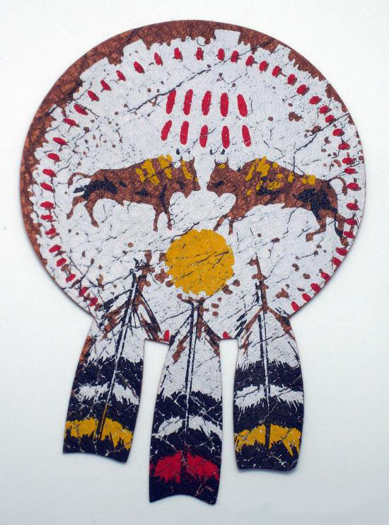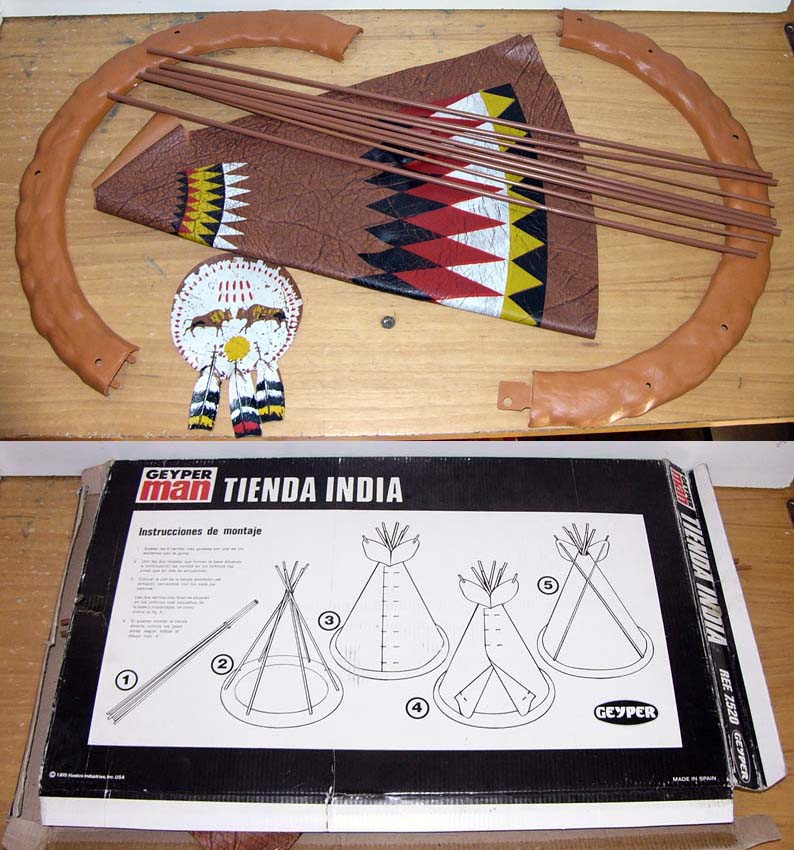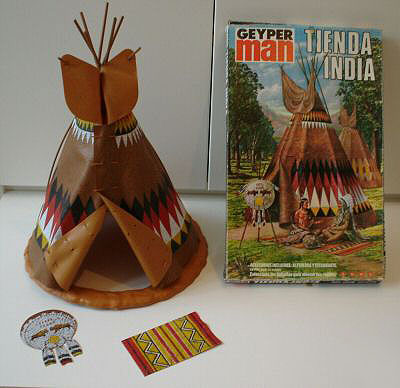 Tienda india, alfombra y un escudo.