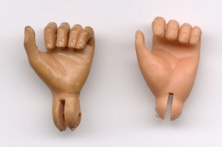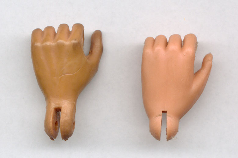 las diferentes partes y las monturas de las manos respecto al Action Man y GiJoe, ya